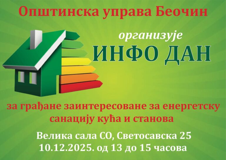 Општинска управа Беочин позива све заинтересоване грађане на Инфо дан посвећен Јавном позиву за суфинансирање мера енергетске санације породичних кућа и станова на територији општине Беочин за…