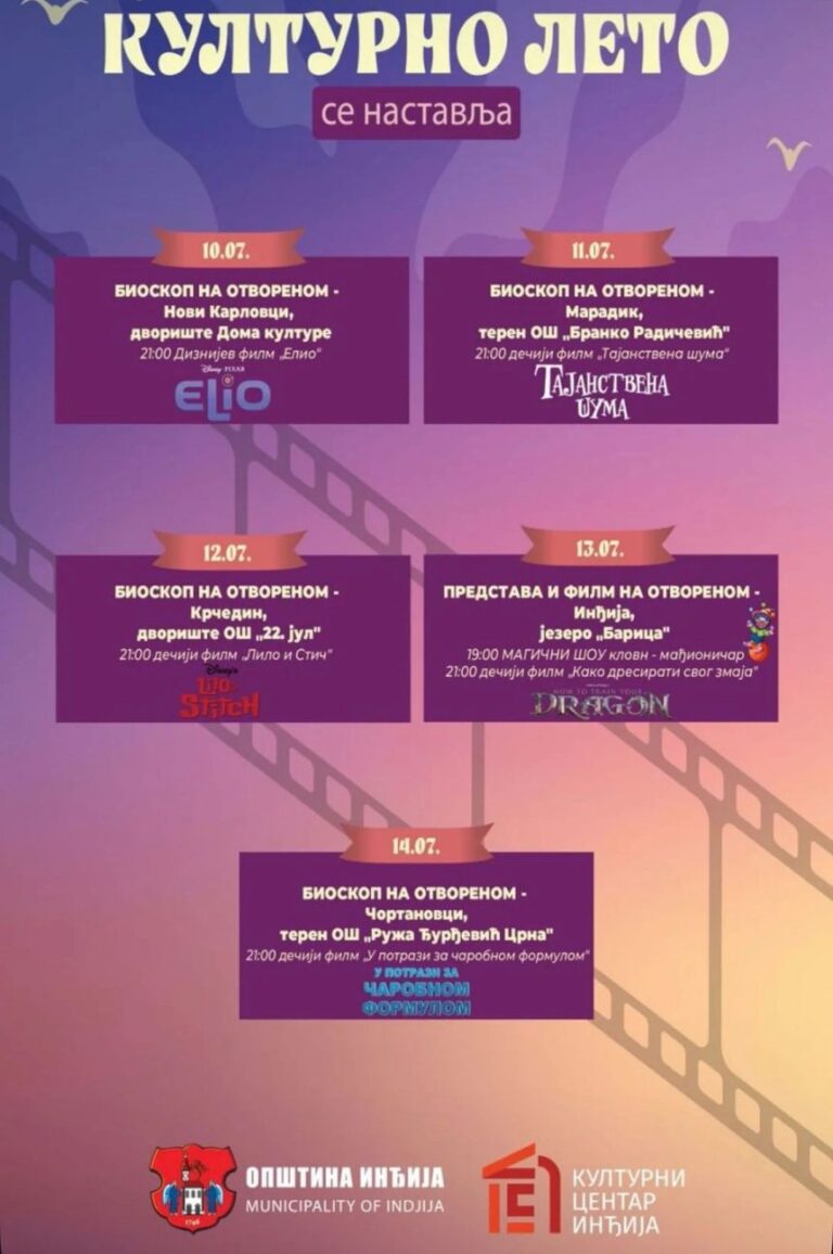 Општина Инђија и Културни центар Инђија са поносом најављују почетак новог издања манифестације „Културно лето“! Припремили смо вам прегршт биоскопских пројекција на отвореном и узбудљивих представа које…