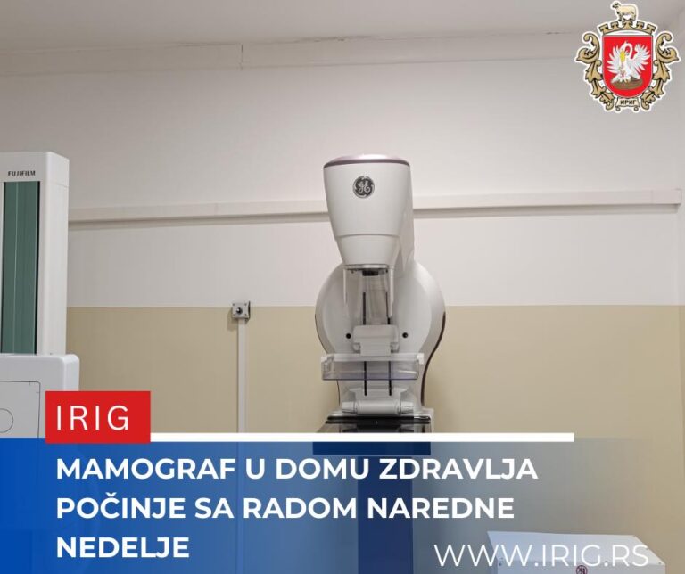 У Дому здравља Ириг наредних дана биће стављен у употребу један од најсавременијих дигиталних мамографа, чиме ће женама из ове општине први пут бити доступна комплетна дијагностика…