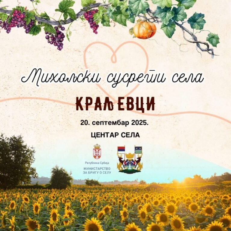 У центру села Краљевци, 20. септембра одржаће се традиционална манифестација „Михољски сусрети села“, посвећена промоцији и очувању сеоског начина живота и културног наслеђа. Овај догађај окупиће мештане…