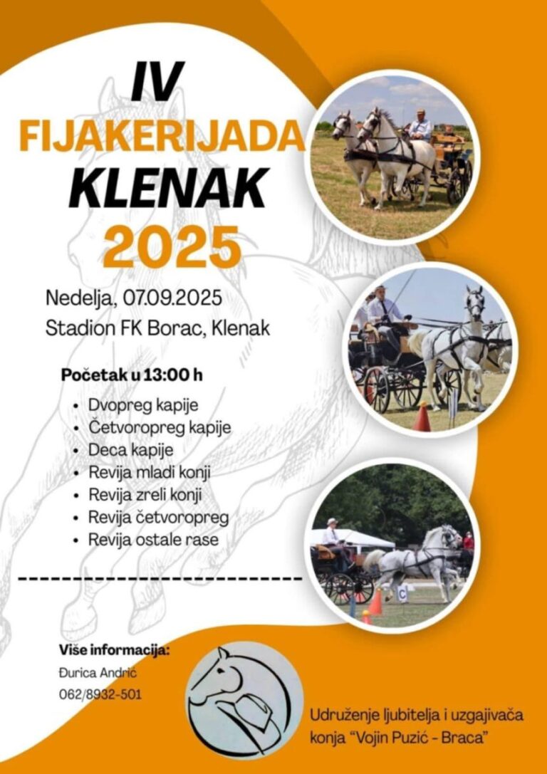 Љубитељи коњичког спорта и традиције имаће прилику да у недељу, 7. септембра 2025. године, уживају у јединственом догађају – четвртој Фијакеријади у Кленку, која се одржава на…