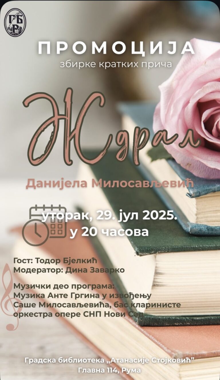 Промоција збирке кратких прича „Жрван“ Данијеле Милосављевић – 29. јул Већ сутра, у уторак 29. јула 2025. године, са почетком у 20 часова, у Градској библиотеци „Атанасије…
