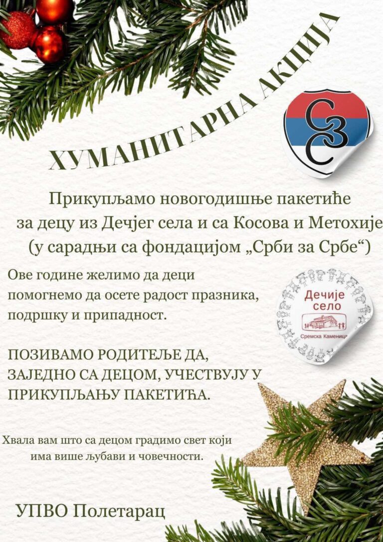 УПВО „Полетарац“ покренуо је хуманитарну акцију са циљем прикупљања новогодишњих пакетића за децу из Дечјег села у Сремској Каменици, као и за најмлађе са Косова и Метохије.…