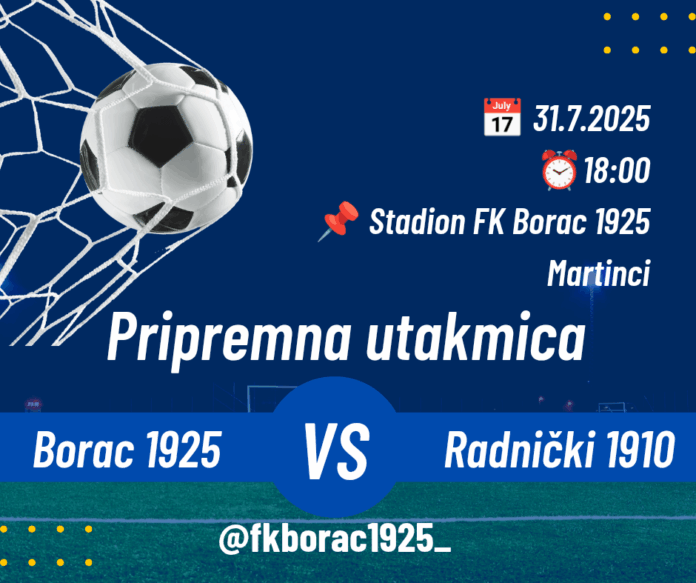 Данас, 31. јула 2025. године, у Мартинцима ће се одиграти припремна фудбалска утакмица између домаћег ФК „Борац 1925“ и гостујућег тима „Радничког 1910“. Меч ће се играти…