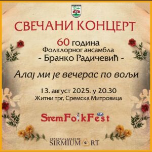 60 година фолклорне традиције! Фолклорни ансамбл "Бранко Радичевић", поносни домаћин нашег фестивала од самог оснивања, ове године прославља велики јубилеј – 60 година постојања и непрекидног рада! Тим поводом, треће вечери #sremfolkfest, публика ће уживати у свечаном концерту којим ће ансамбл достојно обележити овај значајан датум. Хвала им што већ деценијама чувају и негују нашу културу, традицију и фолклор!
