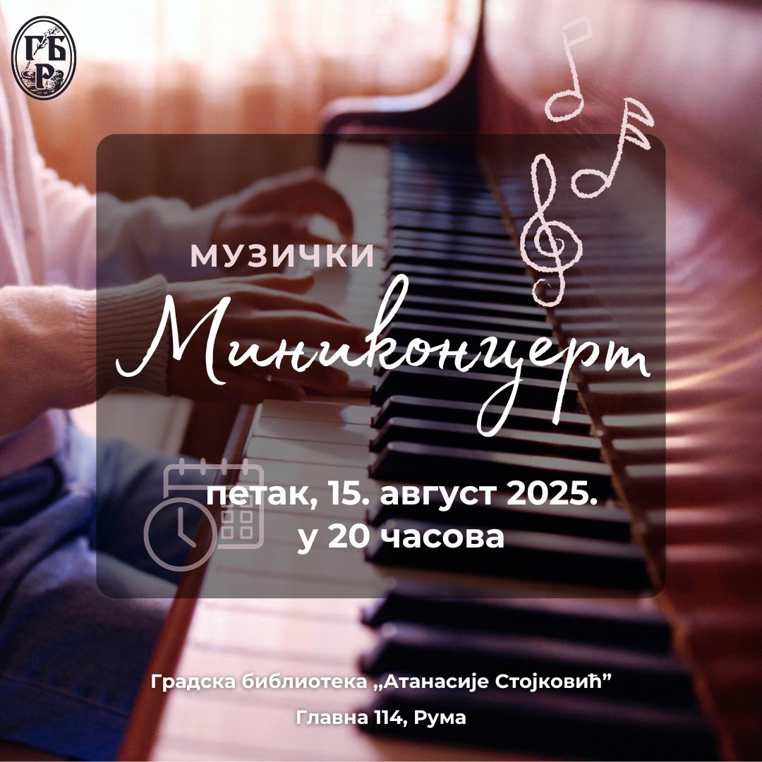Позивају се сви заинтересовани на музички мини-концерт који ће се одржати у петак, 15. августа 2025. године, у 20 часова. Догађај ће бити одржан у Градској библиотеци „Атанасије Стојковић“ на адреси Главна 114, Рума.