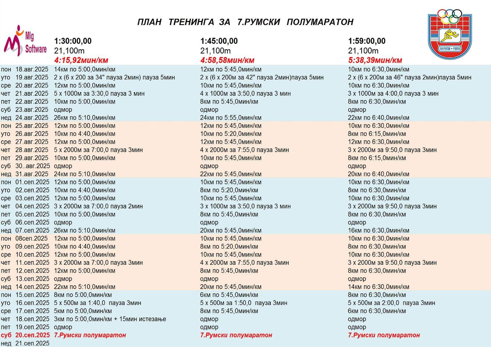 У суботу, 20. септембра, у 16:00 часова, Рума ће бити домаћин 7. Румског полумаратона, једног од најлепших тркачких догађаја у Србији. Такмичење, које организује Спортски савез општине Рума, поново ће понудити незаборавно спортско искуство за тркаче из целе земље и региона.