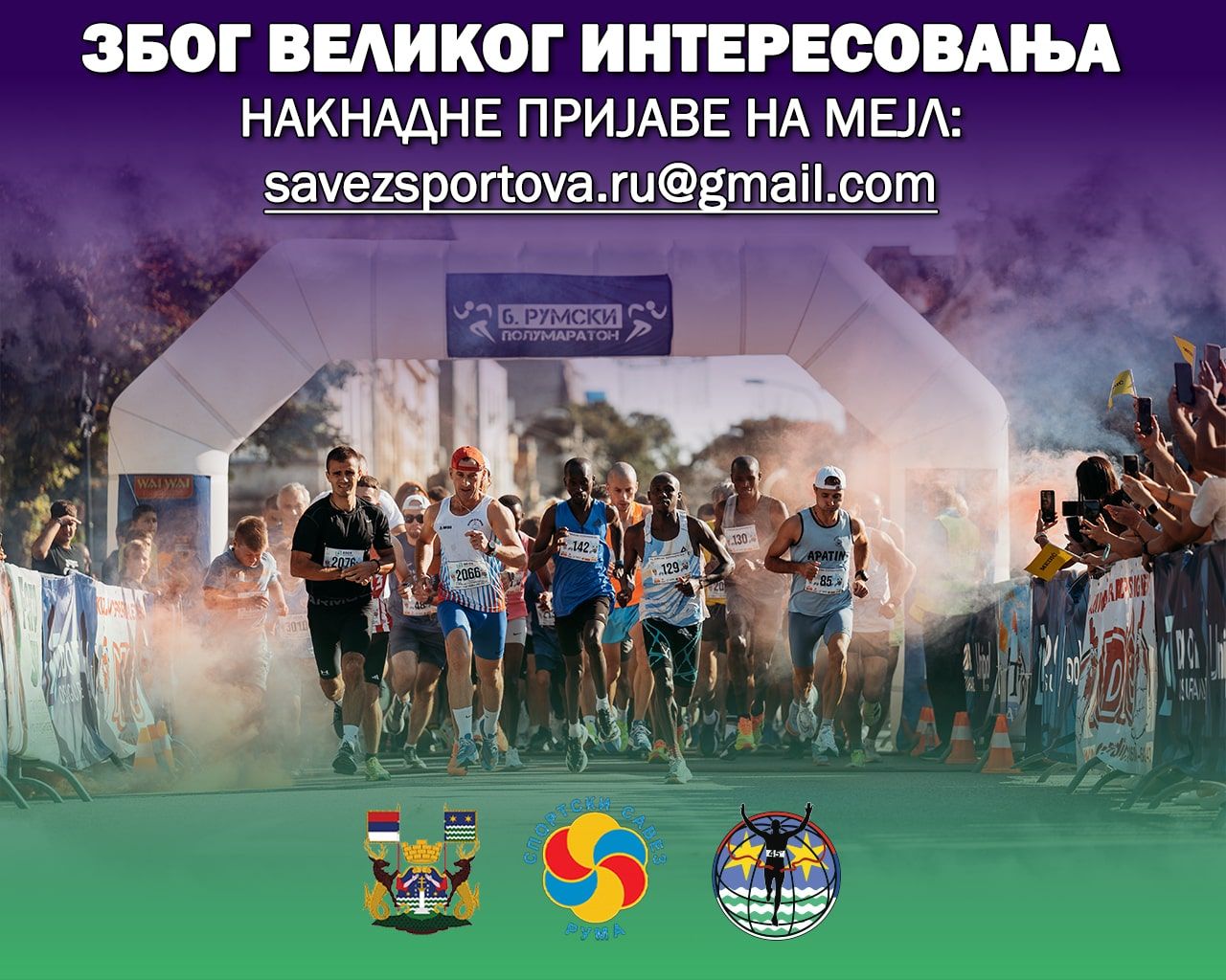 Због великог броја захтева учесника, организатори 7. Румског полумаратона објављују могућност накнадних пријава за полумаратонску трку и ДДОР трку задовољства, уз ограничен број места!