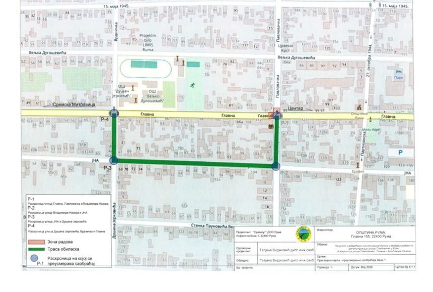 Предузеће „Сремпут“ ДОО из Руме обавештава јавност да ће, због појачаних потреба на обезбеђењу радова на реконструкцији Павловачке улице, доћи до измене режима саобраћаја на делу Павловачке улице, као и на западном краку Главне улице.