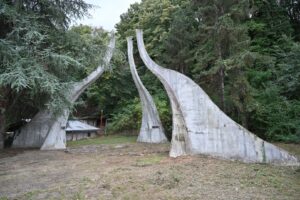 који су на том месту погинули 1942. године. Три извијена стуба на споменику симболизују њихове животе узнете у борби за слободу.