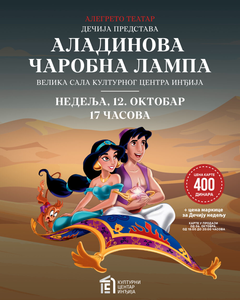 🎭 НАЈАВА: „Аладинова чаробна лампа“ у Културном центру Инђија