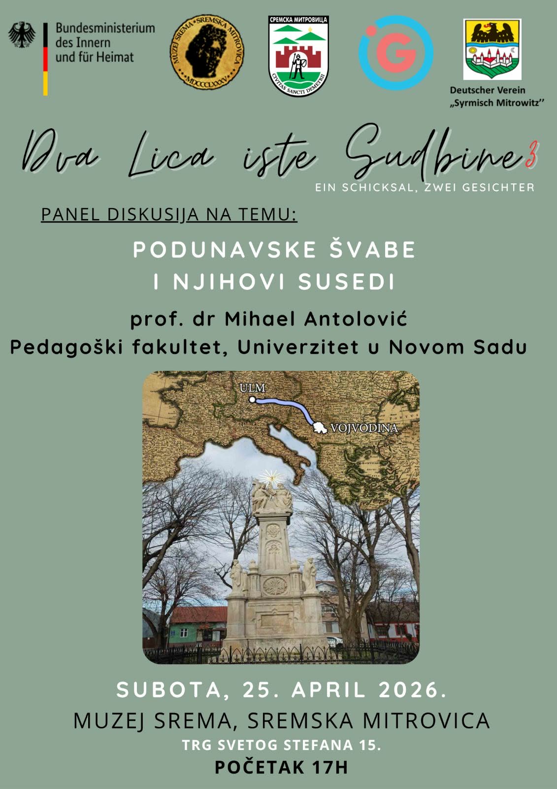 У суботу, 25. априла са поцетком у 17 часова, у музеју Срема биће одржана дискусија на тему: “Подунавске Швабе и њихови суседи”.